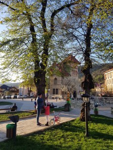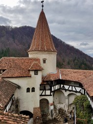 Impresionados por la historia, atravesamos los Cárpatos meridionales, donde se halla el castillo-palacio, rodeado de grandes bosques de hayas y abetos, y tras pasar noche en el complejo turístico de esquí de Poiana Brasov, rodeado de montañas que superan los 2.000 m, con las pistas todavía nevadas en abril, nos dirigimos a la cerca ciudad de Brasov.