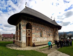 Pernoctamos en Suceava, antigua capital del principado de Moldavia, integrada en Rumanía después de la primera guerra mundial e industrializada más tarde. Visitamos la iglesia de San Jorge, donde se puede apreciar la espiritualidad de los rumanos. Desde aquí, iniciamos al día siguiente la ruta de los monasterios y las iglesias pintadas, que es también la de los valles montanos de la Bucovina. En 1997, había en Rumanía unos 300 monasterios, 123 de ellos femeninos. Todos contienen iglesias; de estas, ocho, situadas en el norte de Moldavia, en el distrito de Suceava, construidas entre 1487 y 1583, son patrimonio de la Humanidad.